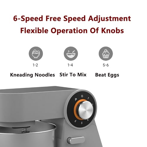 - 【6.2L Large Capacity Bowl】Our stand mixer comes with a 6.2L food-grade stainless steel bowl to meet all your kitchen needs. The kneading efficiency is as high as 1-2 kg/time. With this dough mixer, you can free your hands and save time and energy