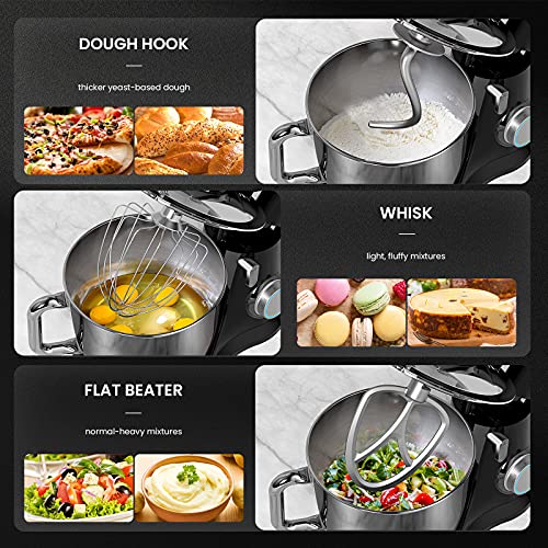 đ°ăHOUSEHOLD STAND MIXERS, SAVES YOUR SPACEăDesigned to be your best kitchen helper, the KICHOT stand mixer fits underneath most kitchen cabinets, perfect for that first apartment, smaller kitchen, or limited countertop space. 4.8QT bowl provides enough mixing capacity. You can mix 1000g of flour at one time. Sides of the bowl equipped with handles to make it more convenient to take. KICHOT mixers kitchen electric stand mixer is a perfect gift idea for your family and friends.