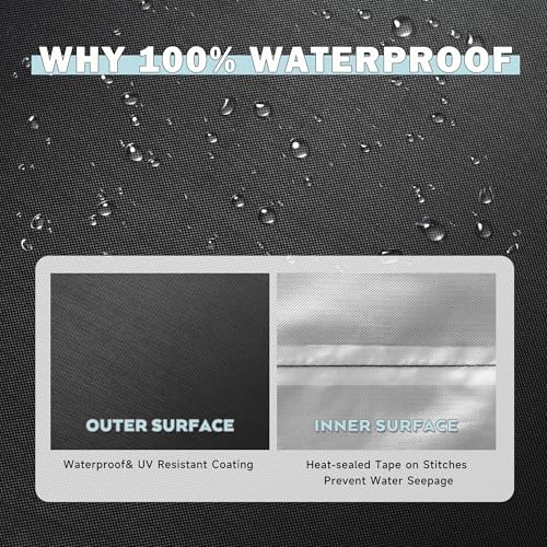 - WATERPROOF & ANTI-UV – Waterproof outer coating and heat-sealed tape on stitches prevent water seepage. Inner PU coating layer protects your bbq table from damage caused by prolonged sun exposure.