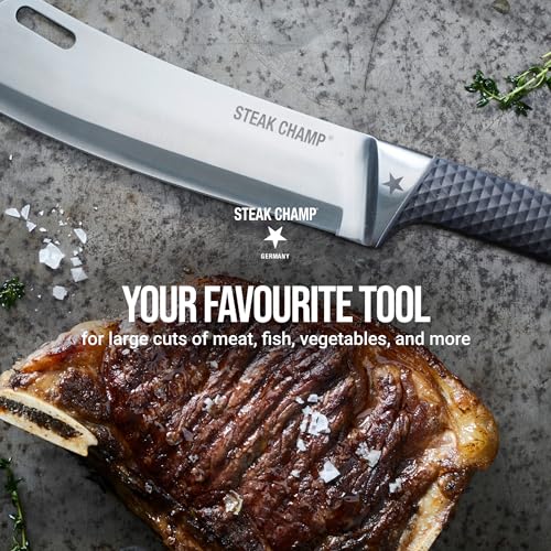 - PRECISION CUTTING: The 8.66'' (22 cm) Steak Champ Knife BBQ Pro boasts a meticulously hand-sharpened blade with an approximate 15-degree angle, ensuring exceptional sharpness for precise cuts every time