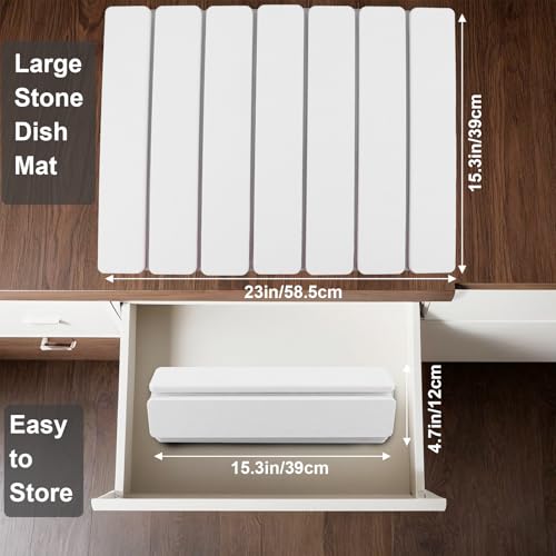 Stone Drying Mat for Kitchen Counter 40x30cm – Foldable Non-Slip Diatomite Dish Draining Pad for Sink and Worktop (White)