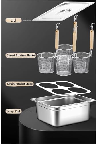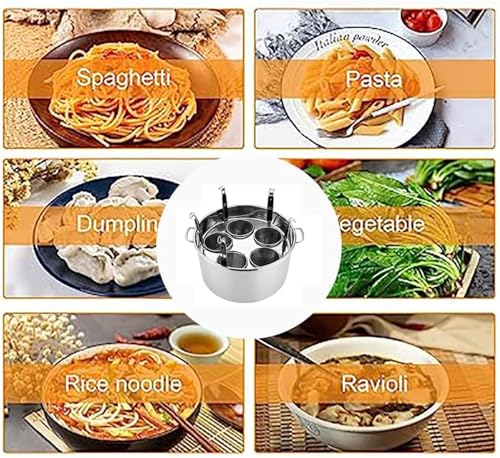 - Humanized Design: The pasta cooker includes a food-grade nickel-plated mesh filter for easy filtration. The hangable lid saves space, and the safe handle allows for easy carrying. The insert basket allows you to cook 3-5 different kinds of food at once.