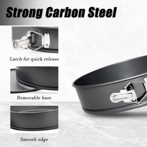 - Practical and Multi-Use:This is not only a springform cheesecake tin,it is also ideal for all types of frozen desserts,fruitcake,moist sponges cake,mousse cakes and creamy cheesecakes.Excellent for food service preparation and a variety of occasions,including small and layer cakes for weddings,celebrations.