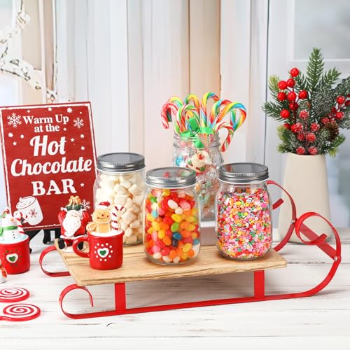 Sunnychicc Christmas Sleigh Hot Chocolate Bar Decor Red Christmas Hot Cocoa Wood Tray Holder Box Decorative Farmhouse Coffee Station Organizer for Xmas Home Office Kitchen Winter Gift Holiday Party