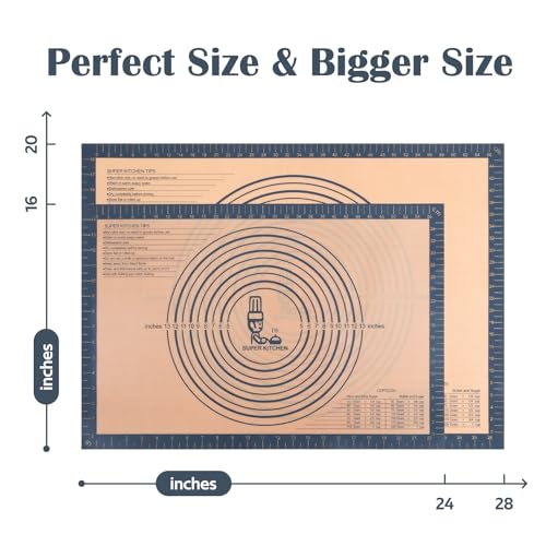 Super Kitchen Extra Large Non-Slip Silicone Pastry Baking Mat with Dough Scraper, Non-Stick Fondant Rolling Mat, Pizza Dough Kneading Board, Baking Equipment Counter Mat, BPA Free (Grey, 71 x 51 cm)