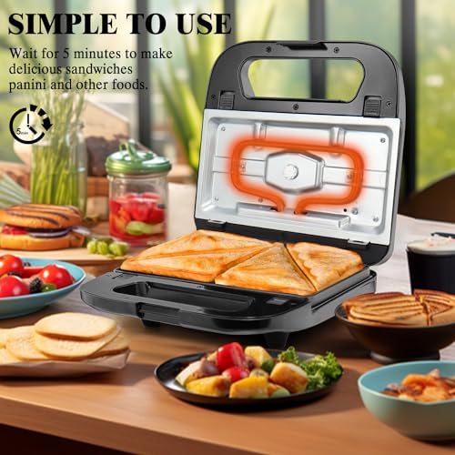 - Easy to use: Simply preheat the machine for 30 seconds, then put the ingredients into the machine and wait 5 minutes to immediately prepare delicious sandwiches, panini and other foods.