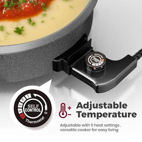 - Precise Temperature Control & Detachable Thermostat: Detachable thermostat dial lets you fine-tune heat from low simmers to high sears. Simply unplug for safe, hassle-free cleaning – no electrical parts to immerse!