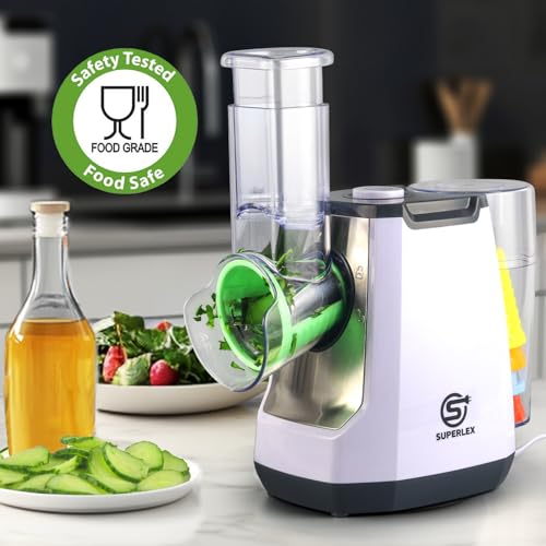 SUPERLEX Electric Grater Vegetable Slicer 5-in-1, with 5-Interchangeable Drum Blades, Cheese graters for Fruit and Vegetables Carrots Nuts Grater Kitchen