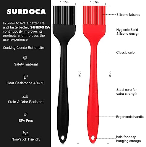 SURDOCA Silicone Basting Brush Pastry Brush – 2P 8.2" High Heat Resistant Nonstick Brushes for Kitchen Baking, Stainless Steel Core Design, BPA Free – Outdoor Dining Barbecue Utensils Basting Brushes