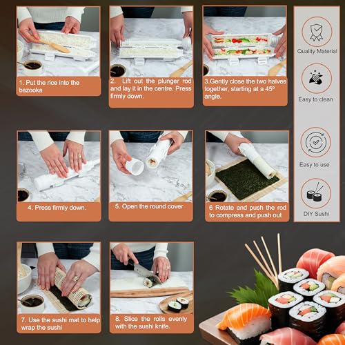 - User-Friendly Sushi Roller Bazooka & Rice Molds: The innovative sushi roller bazooka simplifies the process of shaping perfect rolls, while the included rice molds are ideal for crafting beautifully shaped onigiri or rice balls. Together, these tools make this kit an excellent choice for both beginners and experienced sushi makers.