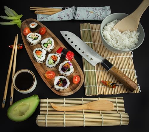 - High-Quality Bamboo Sushi Rolling Mats: Crafted from premium bamboo, the sushi rolling mats included in this set provide a natural and traditional feel to your sushi preparation process. These durable mats ensure that your sushi rice is rolled tightly and neatly, enhancing both the appearance and taste of your homemade sushi rolls.