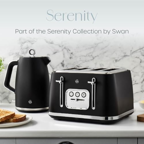 Swan Serenity ST19024BLK 4 Slice Toaster with Matt Finish, 6 Browning Levels, Temperature Control, Reheat and Defrost Functions, 2100W, Black