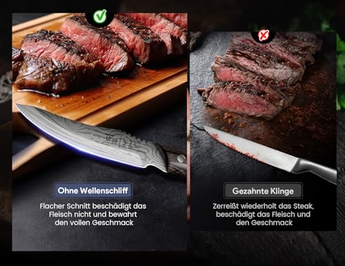 - Our steak knife set features a contemporary gear teeth element for a non-slip grip, ensuring your safety while enjoying your food. The classic shape of the knives adds to their beauty and practicality, providing a stable grip even when wet