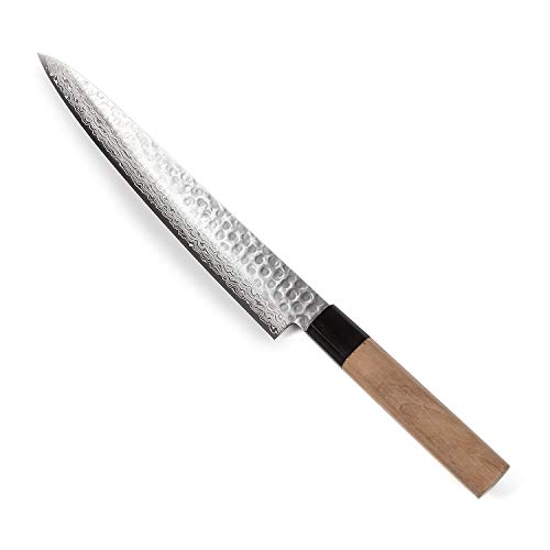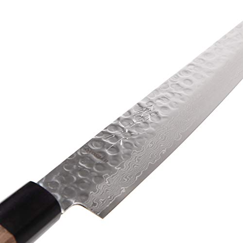 Syosaku Japanese Sujihiki Knife Hammered Damascus VG-10 46 Layer Octagonal Walnut Handle, Slicer 9.5-inch (240mm)