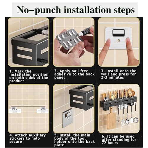 - Space-saving: The wall-mounted kitchen caddy has enough space to store cutlery, cooking utensils and knives, the kitchen caddy has a draining function for quick drying and 8 removable hooks for hanging spoons with holes, spatulas, towels and other items with holes, which can efficiently organise the countertop and save space.