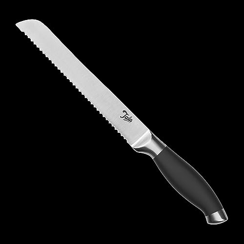 - The Tala 6 Piece Knife Block Set is an essential addition to any kitchen. The set has a variety of culinary including, a 20cm Bread Knife with a serrated edge for slicing bread, 20cm Chef's Knife for dicing and chopping, 12.5cm Santoku Knife for slicing, dicing and mincing, 11.5cm Serrated Utility Knife with serrated edge or slicing tomatoes or other soft fruit and vegetables, and a 9cm Paring Knife for peeling and paring.