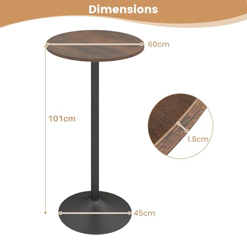 TANGZON Round Bar Table, 60CM Steel Frame Bistro Pub Table with Fixed Top, Metal Base & Non-Slip Mat, Dining Desk for Home Kitchen Pub Bistro, Easy Assembly (2, Rustic Brown, 60 x 60 x 101cm)