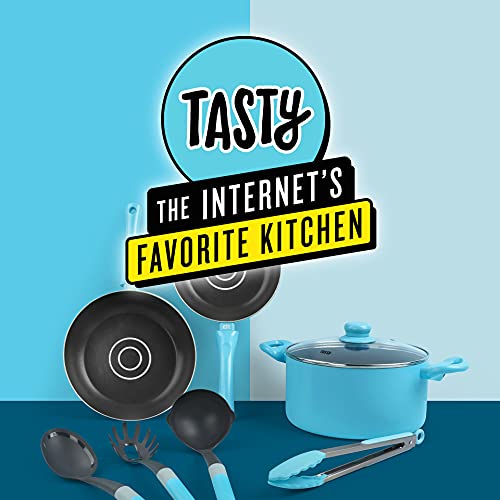 • 1 x 8-Piece Kitchen Starter Set, Pot & Frying Pan Set + Cooking Gadgets & Utensils by Tasty, Colour: Blue and Grey