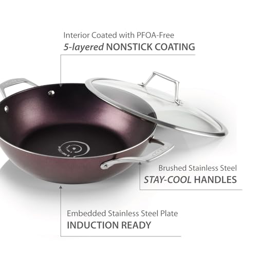 - 𝐇𝐢𝐠𝐡-𝐏𝐞𝐫𝐟𝐨𝐫𝐦𝐚𝐧𝐜𝐞 𝐍𝐨𝐧𝐬𝐭𝐢𝐜𝐤 – the highly durable, PFOA-free, 3-layer nonstick coating is metal utensil safe and ensures food releases easily and completely