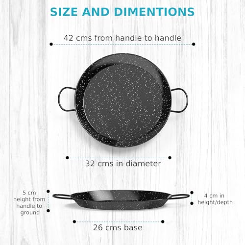 - PERFECT SIZE: Cook paella for your family and friends with ease. The 32 cm paella pan is ideal for 4 people. Bring everyone together around an incredible paella.