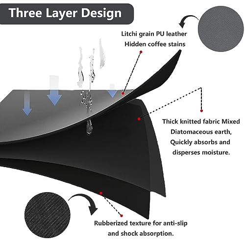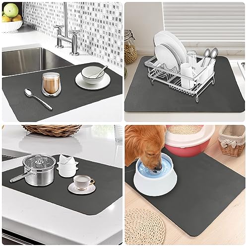 TENQUAN Self Drying Mat for Kitchen Counter 60x40cm Water Absorbent Draining Mat with Non-Slip Bottom Dish Drying Mat Coffee Machine Mat Dishes Rack Mat Countertop Protector Mat(Dark Grey)