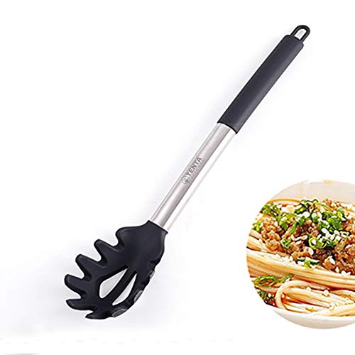 TENTA KITCHEN Good Grip Pasta Fork Spaghetti Server Silicone+Strong and Durable Nylon Core with Stainless Steel + Silicone Handle for Non-Stick Cookware Utensil