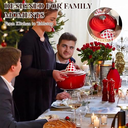 - Safety Meets Convenienceour:Our dutch oven features extra-wide stainless steel handles that provide a comfortable, slip-free grip—even with oven mitts on. No more awkward balancing acts! Every cast iron pot comes with a pair of thick cotton oven mitts, specially designed to protect your hands from steam and high temperatures. No more scrambling for kitchen towels when handling your scorching-hot pot