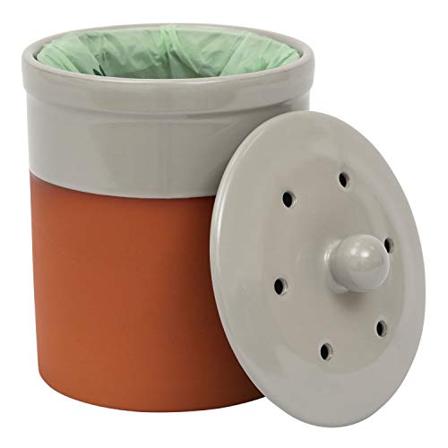 Terracotta Ceramic Kitchen Compost Caddy (Pale Grey) – Chetnole ceramic composting Bin for Food Waste Recycling