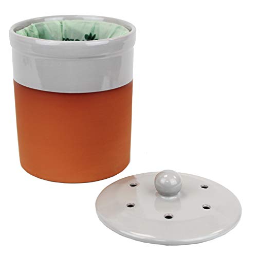 Terracotta Ceramic Kitchen Compost Caddy (Pale Grey) – Chetnole Ceramic Food Waste Bin & 1 Filter Pack