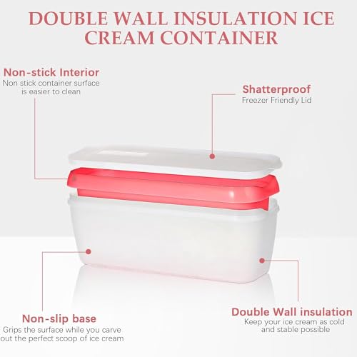 - EASY SCOOP & EASY STORE ICE CREAM TUB FORM – Specifically made as ice cream containers for homemade ice cream – the long, slim design means easy scooping & storing every time. Each storage container for ice cream is freezer-safe, insulated & holds 1.5 quarts in an 11” X 2.7" X 4” form. 4 units per set