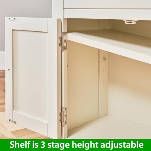 • Features a large drawer and a two-door cupboard with a 3-stage height adjustable shelf