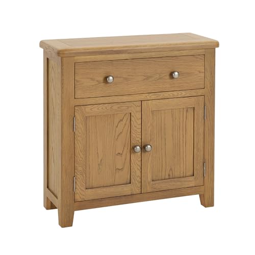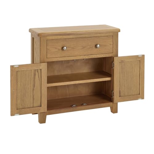 The Furniture Market Cotswold Rustic Smoked Oak Sideboard with Large Drawer & Cupboard, Adjustable Shelf, Dovetail Drawers, Country Style, Solid Oak, Home Storage – H 800mm x W 800mm x D 320mm