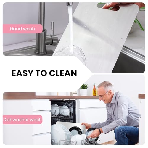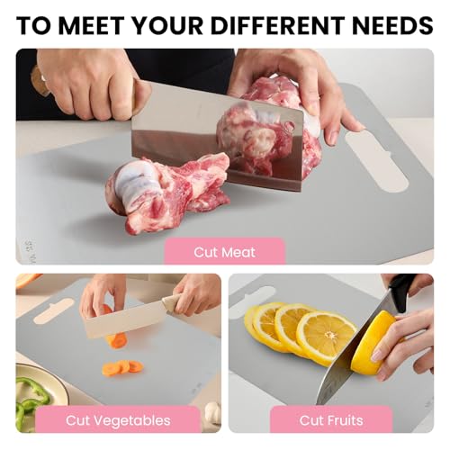 - 【Versatile and Long-Lasting】- The titanium and steel chopping boards are incredibly versatile, Dual-sided design, perfect for a variety of kitchen tasks from slicing vegetables to prepping sandwiches. Its consistent, smooth surface ensures that even after prolonged use, the chopping boards for your kitchen remain intact, guaranteeing you a long-lasting kitchen accessory.