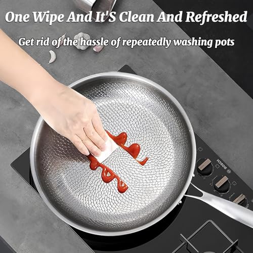 • COMPATIBLE WITH ALL STOVES: The high magnetic conductive stainless steel base of the induction stainless steel frying pan adopts laser-etched techgology, scratch resistance and wear resistance, and works well on induction stove top, gas stove top, electric cooktop, glass stove, ceramic stove, ready for any kitchen