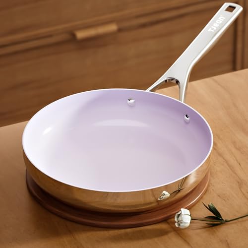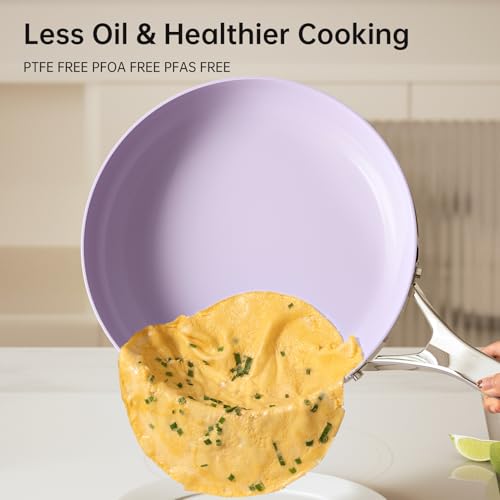 Tjean Nonstick Ceramic Frying Pan Set (No PFTE,PFOA,PFAS) Non Toxic Cookware Set with Stainless Steel Handle Compatible for Induction Gas Electric Ceramic Hob Oven, Safe to 280°C (Lilac, 20+24+28cm)