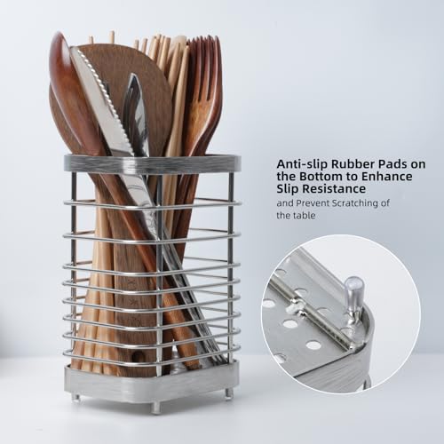 - 【Anti-slip Design】The cutlery caddy it is worth mentioning that the four feet at the bottom of the cutlery rack are equipped with rubber anti-slip design, which is not only stable and reliable, but also effectively protects the desktop from scratches, adding a piece of mind and peace of mind for your kitchen life.