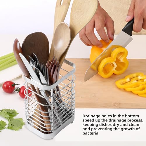 - 【Quick Drying and Ventilation】The smart hollow design of the utensil drainer with carefully configured drainage holes at the bottom gives the cutlery basket excellent quick-drying and ventilating properties, which allows water to drain out quickly, keeps the interior dry, reduces bacterial growth, and takes care of your and your family's health.