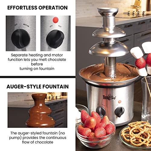 Total Chef 3 Tier Chocolate Fountain with 1.5lbs 680g Capacity Electric Machine Large Fondue Sets Hot Cooking Melting Pot Base Adjustable Temperature Ideal for Kids Birthday Party Buffet Bar Station