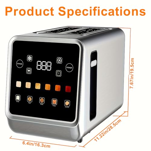 Touch Screen Toaster, 2 Slice Bread Baker, Stainless Steel Smart Digital Toasters with Single-slot Toasting, Memory Function, 5 Bread Types and 6 Browning Settings