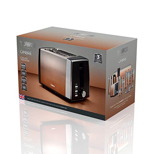 Tower T20038COP Infinity Ombré 2 Slice Toaster, 900W, Copper
