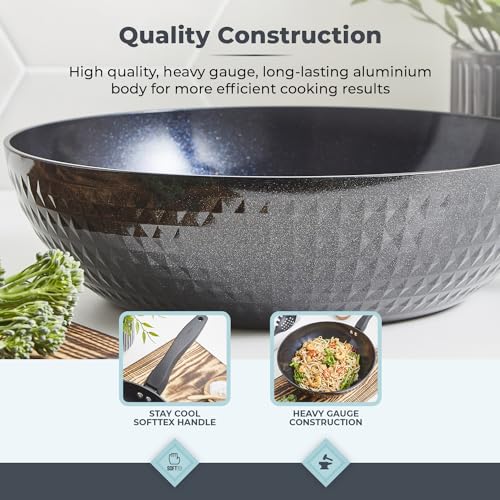 Tower T900134 Diamo Wok with Black Diamond Ceramic Non-Stick Coating and Softtex Handle, Aluminium, 28cm, Black