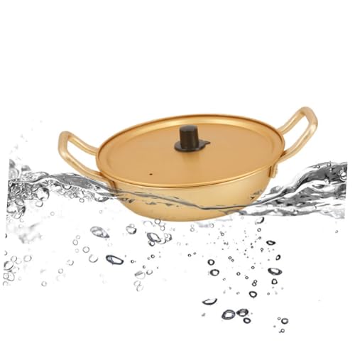 TOYANDONA Korean Ramen Pot – Lightweight Yellow Aluminium Double Handle Cooking Pot with Lid for Instant Noodles and Seafood Soup, Perfect for Home and Outdoor Use