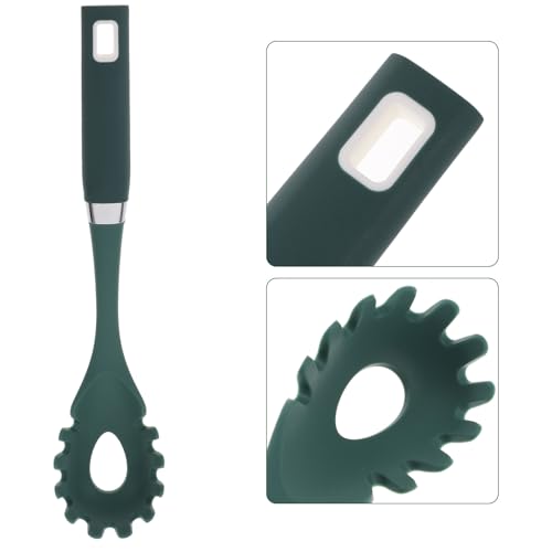 TOYANDONA Silicone Pasta Spoon with Extended Handle, Heat-Resistant Kitchen Strainer and Noodle Filter, Dark Green Pasta Server for Domestic Cooking and Serving Random Style