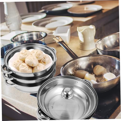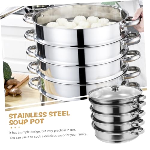 TOYANDONA Stainless Steel Steamer Pot Deep Multi-function Stockpot for Efficient Steaming Boiling and Simmering Space-saving Kitchen Accessory for Healthy Cooking