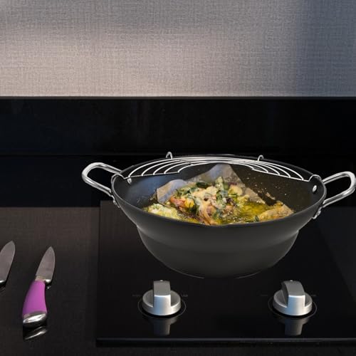 Toyvian 24cm Japanese Tempura Frying Pan – Non-Stick Deep Fryer Pot with Flat Base – Induction Cooker Compatible Portable Fry Pan for Home Cooking