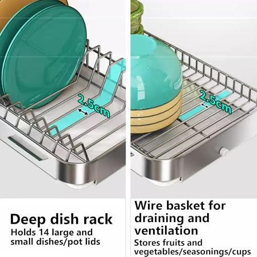 - Premium Stainless Steel, Rustproof and Durable:Made of rustproof stainless steel with a baked enamel finish, this Stainless Steel Dish Rack with Utensil Holder offers excellent resistance to rust and corrosion, ensuring long-lasting durability and shape retention, perfect for everyday use.