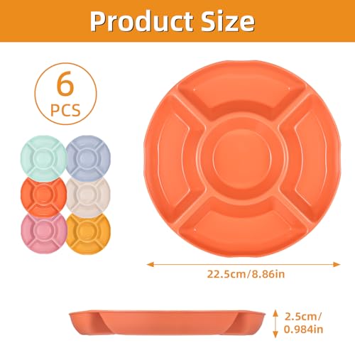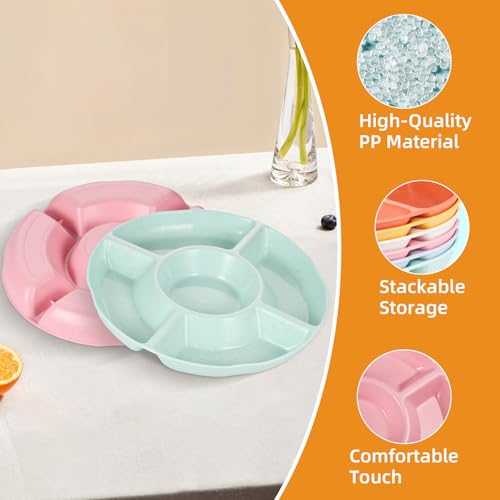 TranRantic 6pcs Snack Serving Tray,Serving Dishes with 5 Sections,Stackable Serving Platter,Reusable Plastic Party Food Trays, Dishwasher Safe Divided Plate for Parties,Cinemas,Buffet(6 Colours)