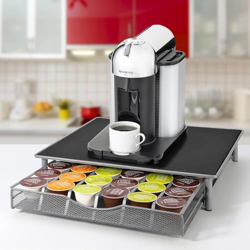 Trendi® Coffee Pods Holder Black Pods Holder Anti-slip Mat with Sturdy Steel Drawer Coffee Machines I Holds 36 Pods Capsule in Drawer I Storage Accessories for Home or Office