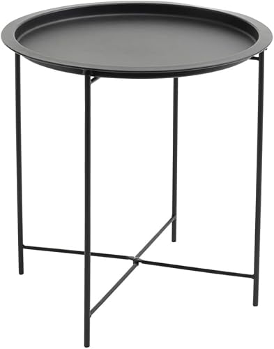 Trendi® Round/Metal Folding/Side Table Tray Top Light/Portable/Coffee/Night Stand (Black)
