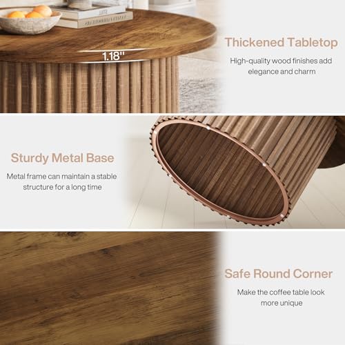 • Stable & Sturdy: This moden round coffee table is made of high-quality thickened engineered wood and a metal base to ensure long-term use. This lovely farmhouse coffee table will add graceful style to your home for years to come.